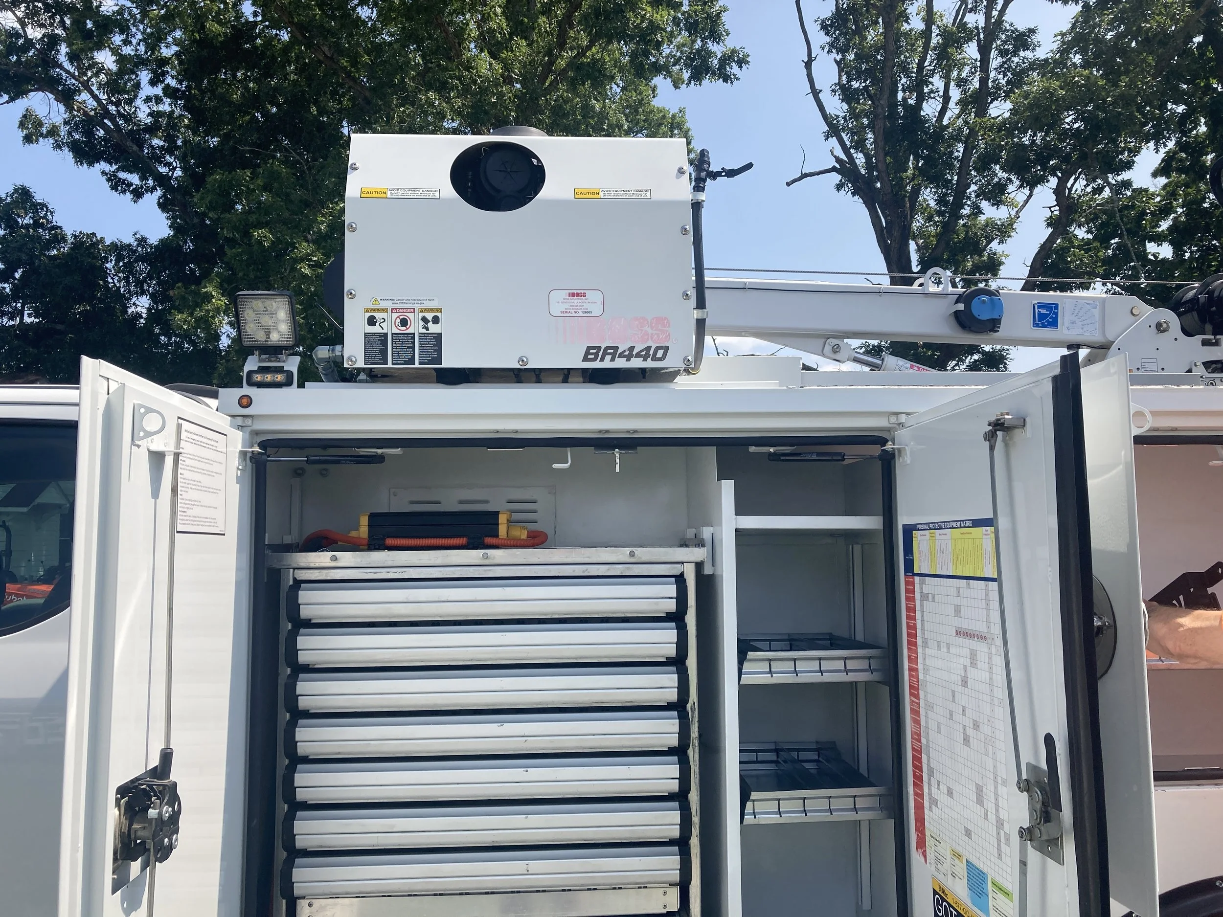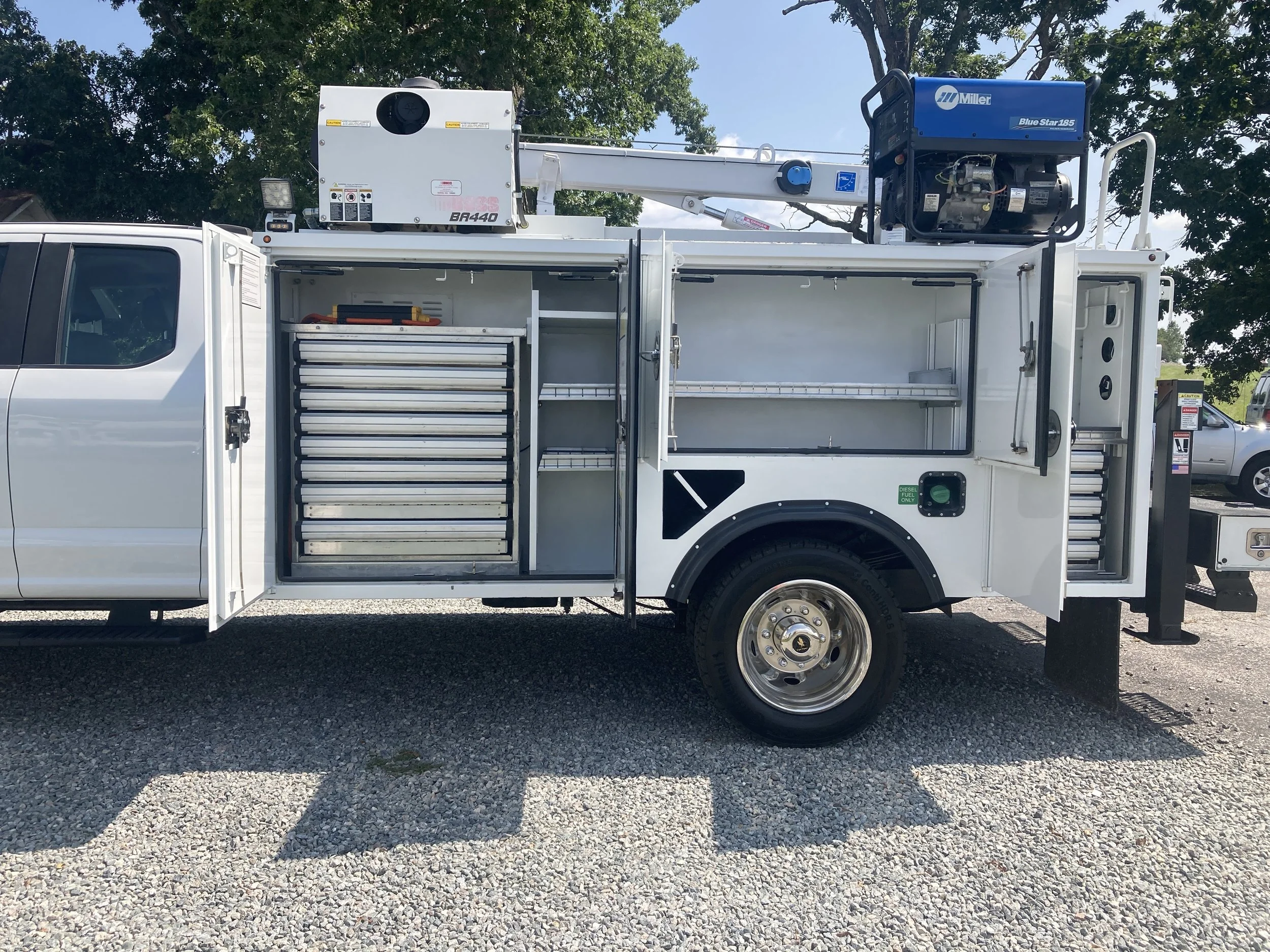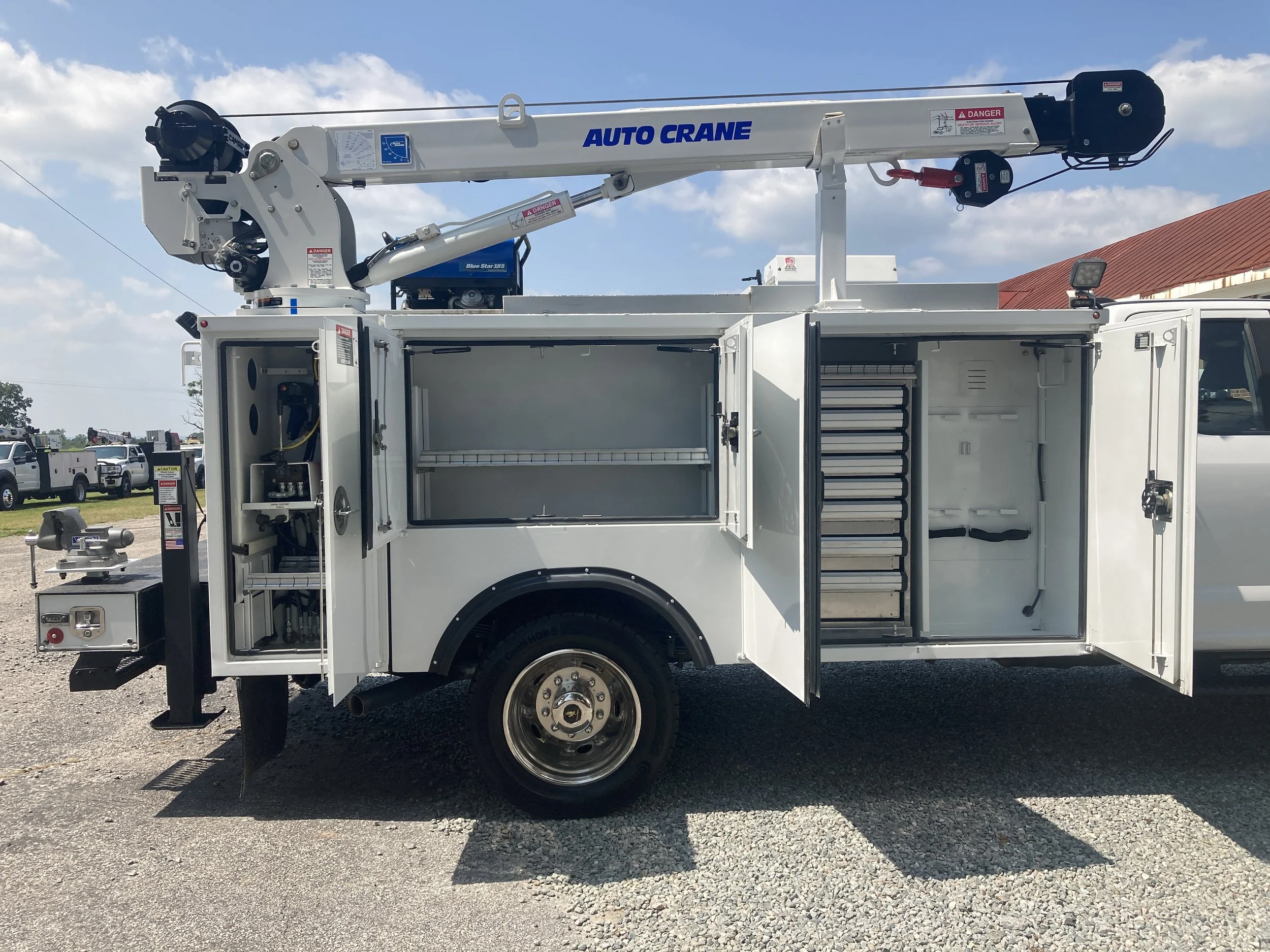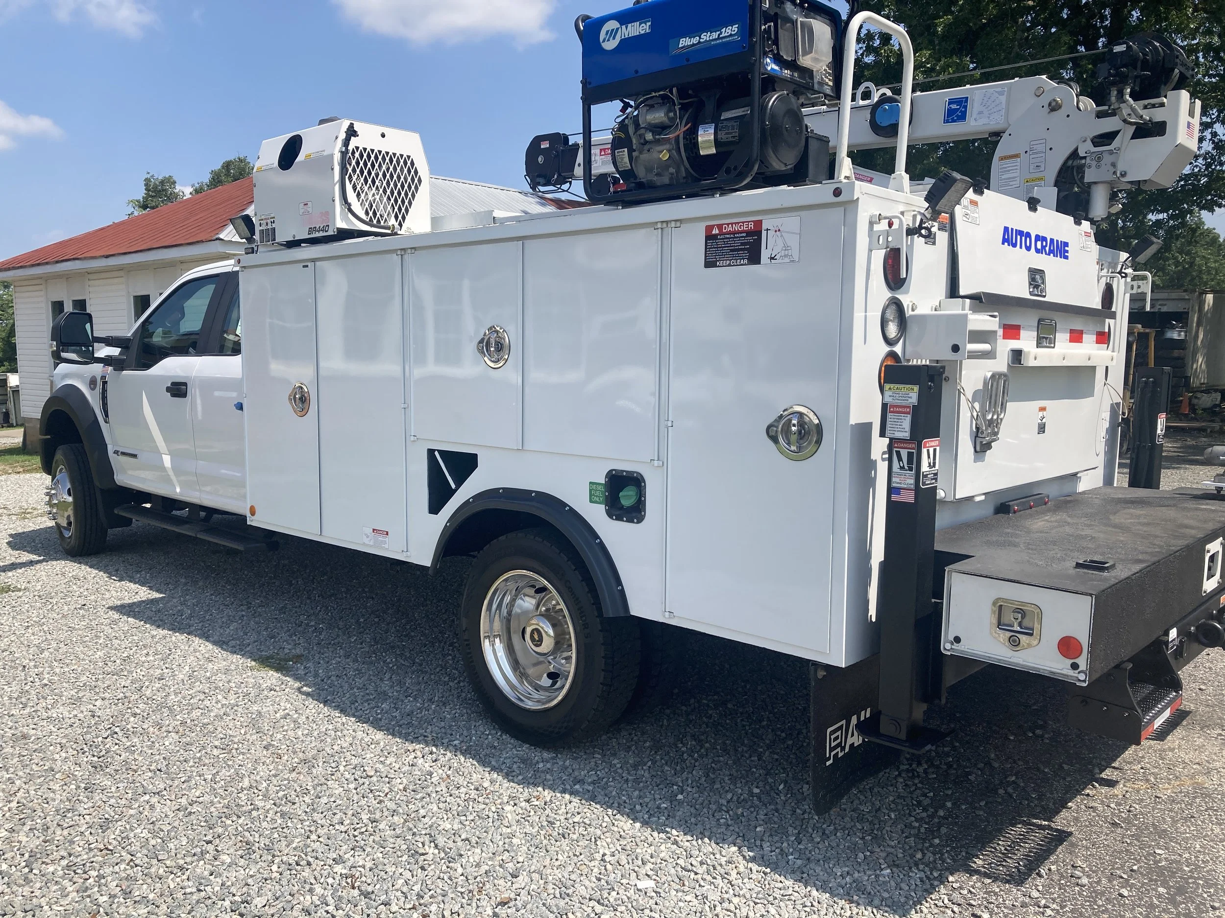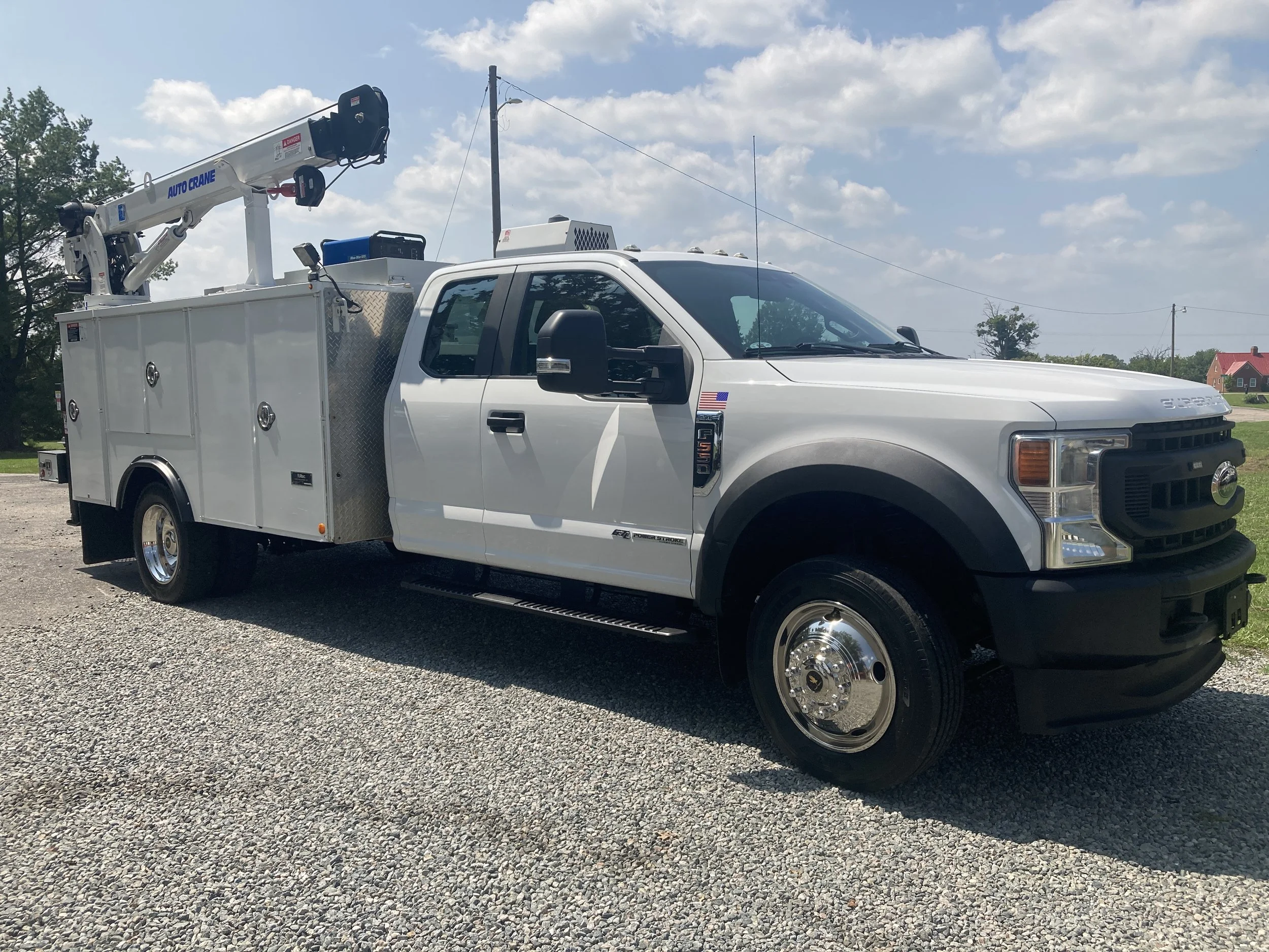 Pristine 2020 Ford F550 Ext Cab 4 X 4 Mechanics Service Truck, 113,121 miles, 6.7 Diesel, Automatic, A/C, Auto Crane HC6 6000 lb, Boss BA440 Air Compressor, Miller Blue Star 185 Welder, Altec Body, Work Bench w/vice, hyd Outriggers, Lighted Cabinets w/,Drawers/Shelves, Backup Camera, Excellent Condition, $109,500.00, call 434-251-9552.